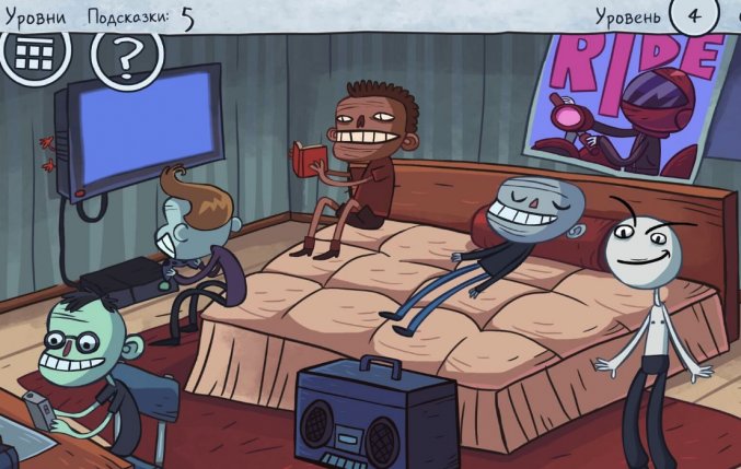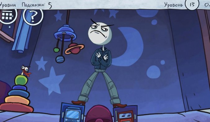 Из названия игры несложно догадаться, что эта игра про мемы. Сама концепция квеста Тролл Фейс не изменилась: игра будет шутить над нами, а мы будем пытаться проходить уровень за уровнем. Геймплей игры максимально прост и понятен. Сначала мы с вами смотрим короткую зарисовку, где наблюдаем за тем, что происходит на этом уровне. Дальше нам предстоит найти правильное решение головоломки. Решение у головоломки одно – правильно тапнуть в нужно месте. Если несколько раз в подряд у вас не получится пройти уровень в Тролл Фейс Квест Интернет Мемы, то игра может дать вам подсказки, но за это уже придется платить. Всего в игре Troll Face Quest Internet Memes 40 уровней, но есть еще один бонусный и секретный уровень. Их вы сможете найти, если будете максимально внимательными и соберете 10 уточек, которых разработчики хитро разбросали по всем уровням. В Troll Face Quest Internet Memes на андроид будут встречаться мировые мемы без привязки в странах. Первые десять уровней игры проходятся очень просто, а дальше у вас могут быть проблемы, поэтому обязательно посмотрите наше видеопрохождение Troll Face Quest Internet Memes. Игра нарисована в сатирическом и карикатурном стиле – за это Тролл Фейс и любят.